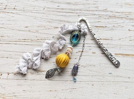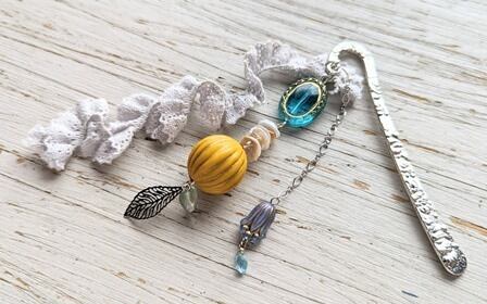 レースやカラフルのビーズを使用した爽やかな雰囲気のブックマークです。